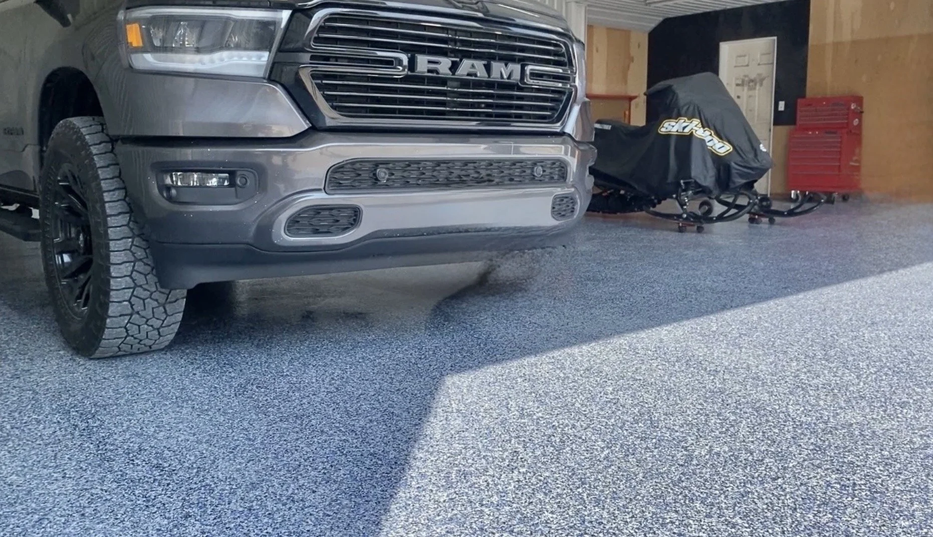 “The shop floor that housed all my tools and toys was cracked, chipped, dusty and dirty. The new flake epoxy floor from Pro Finish Epoxy made the shop floor better than new. The added colour makes the room pop. I couldn’t have been happier with the finished product and craftsmanship.”